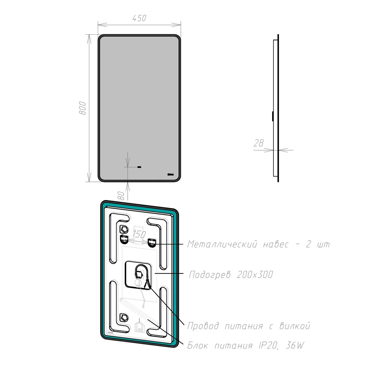 —Зеркало LeMark Mioblack LM45ZM-black 50х80 подвесное