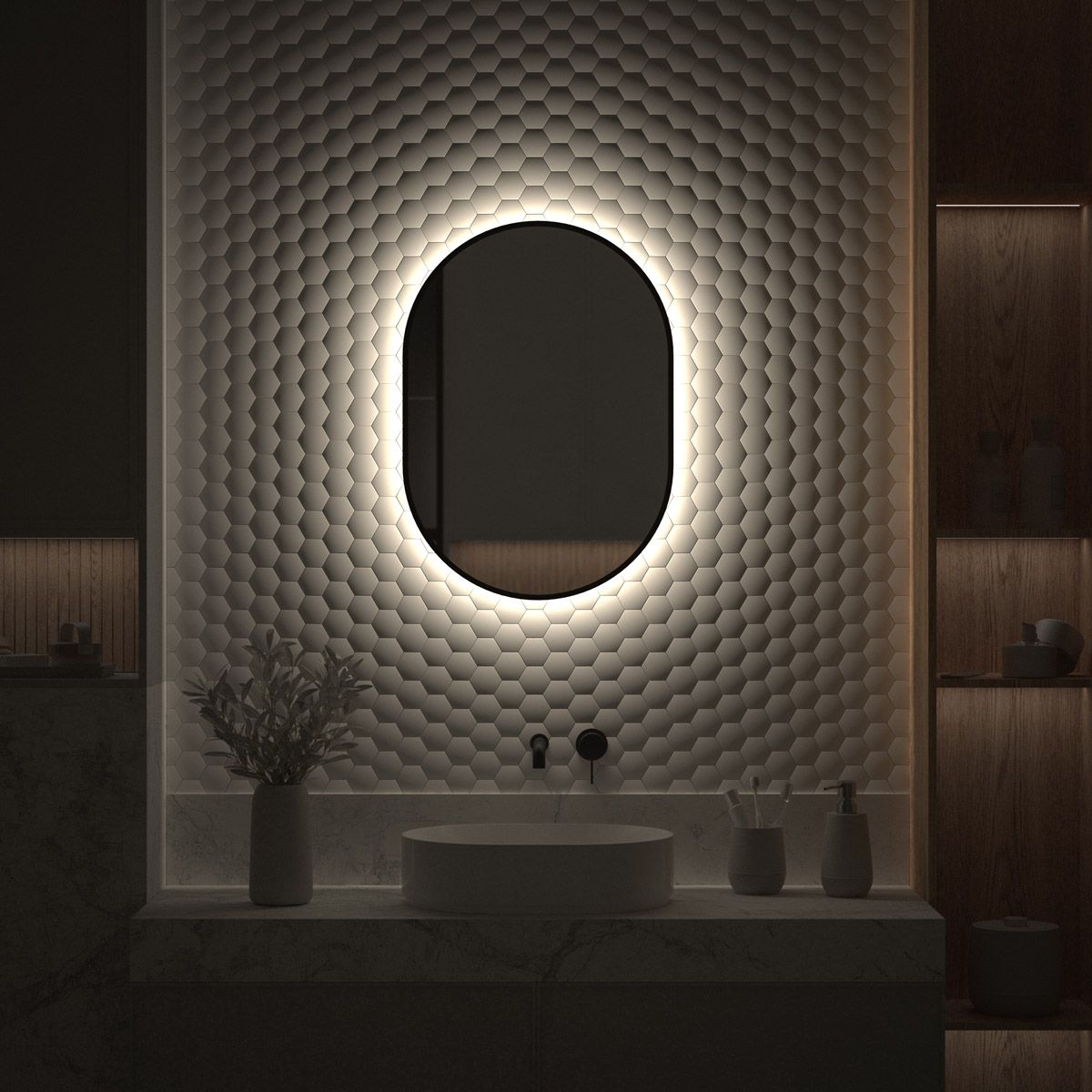 Светодиодная подсветка с цветовой температурой 4500 Кельвинов обеспечивает яркость и комфортную атмосферу в любое время суток. Это зеркало не имеет выключателя и может быть легко подключено к подготовленному электро-выводу из стены. Возможен как вертикальный, так и горизонтальный монтаж.