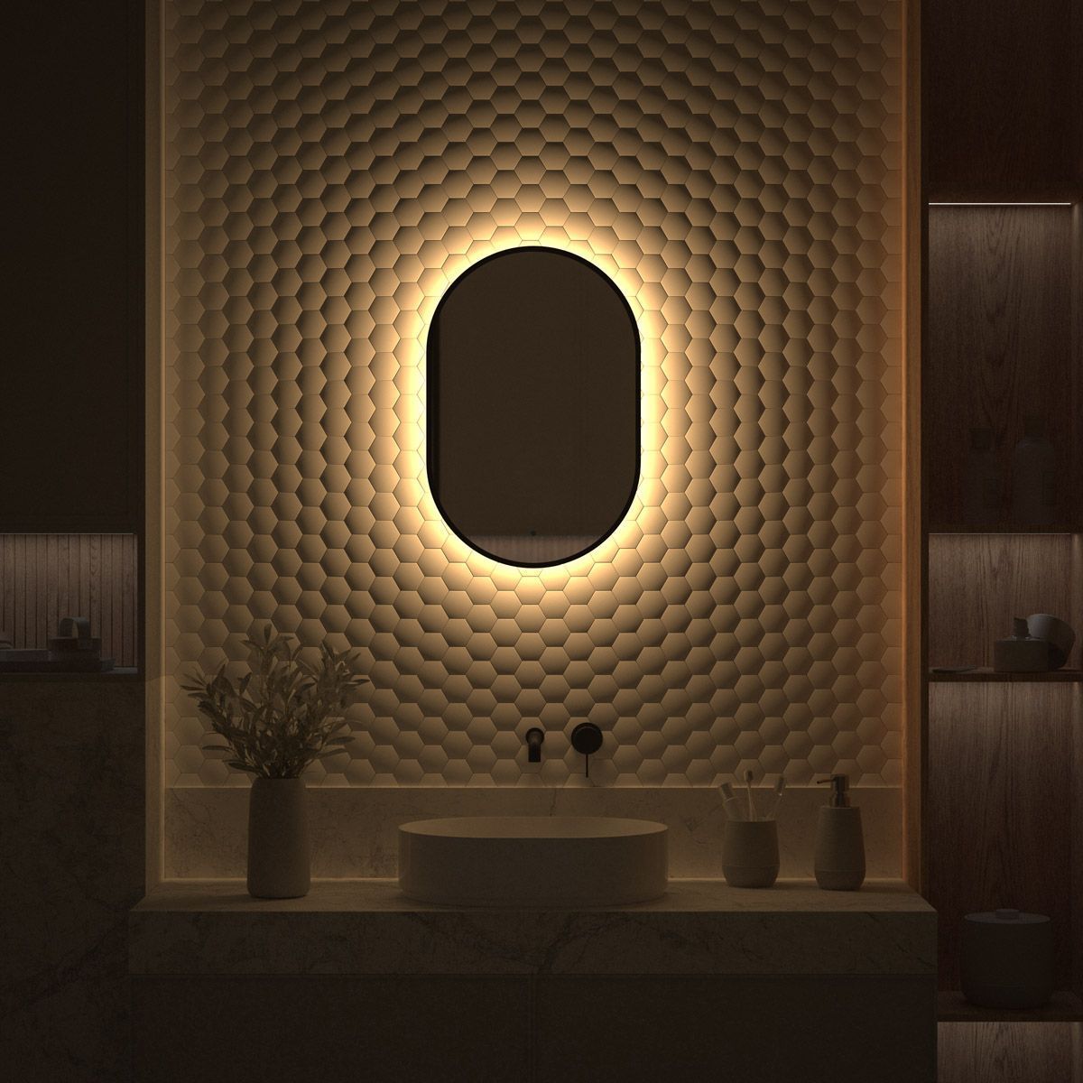 Светодиодная подсветка с цветовой температурой 3000 Кельвинов обеспечивает яркость и комфортную атмосферу в любое время суток. Это зеркало оборудовано встроенным инфракрасным выключателем с регулировкой яркости и может быть легко подключено к подготовленному электро-выводу из стены. Возможен как вертикальный, так и горизонтальный монтаж.