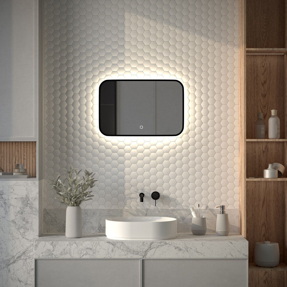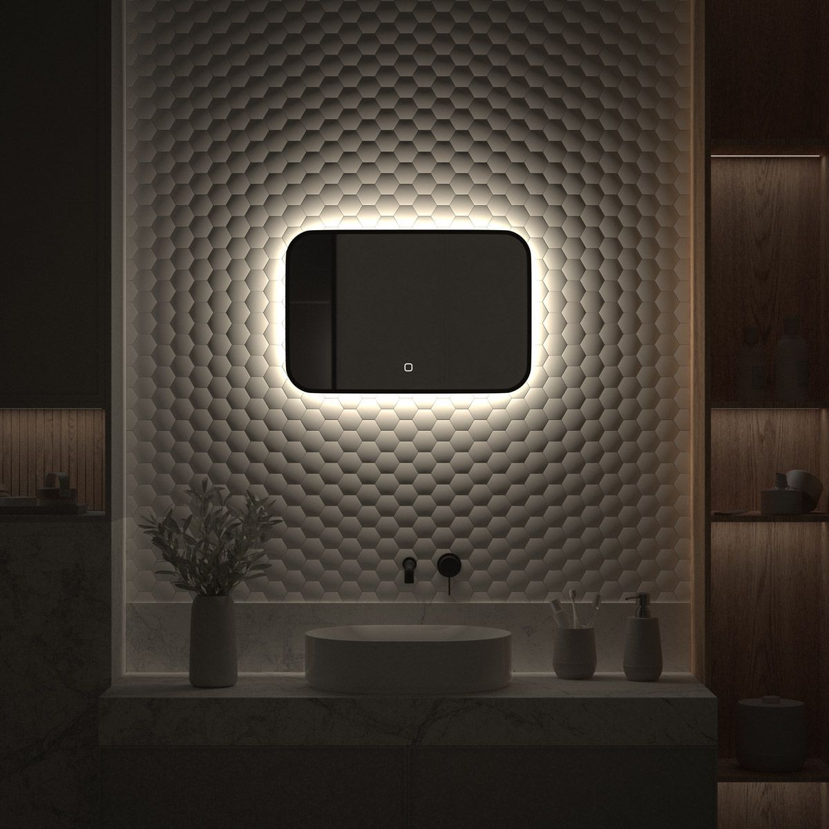 Светодиодная подсветка с цветовой температурой 4500 Кельвинов обеспечивает яркость и комфортную атмосферу в любое время суток. Это зеркало оборудовано встроенным сенсорным выключателем с регулировкой яркости и может быть легко подключено к подготовленному электро-выводу из стены.