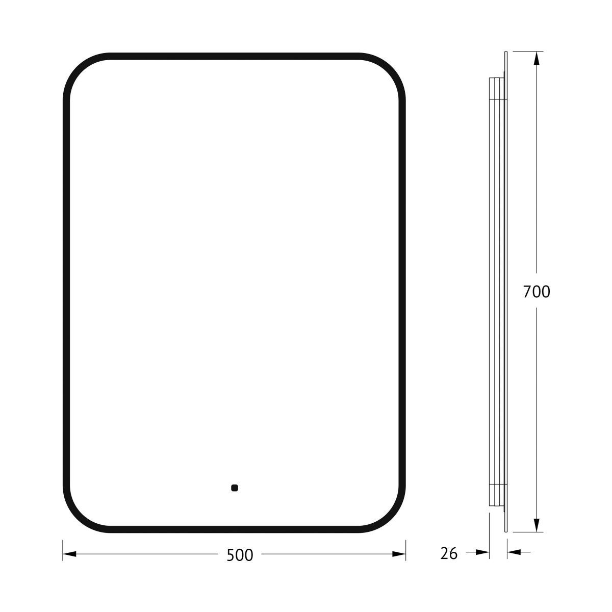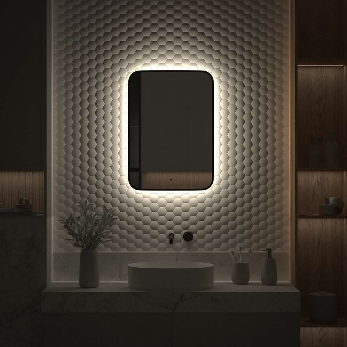 Светодиодная подсветка с цветовой температурой 4500 Кельвинов обеспечивает яркость и комфортную атмосферу в любое время суток. Это зеркало оборудовано встроенным инфракрасным выключателем с регулировкой яркости и может быть легко подключено к подготовленному электро-выводу из стены.