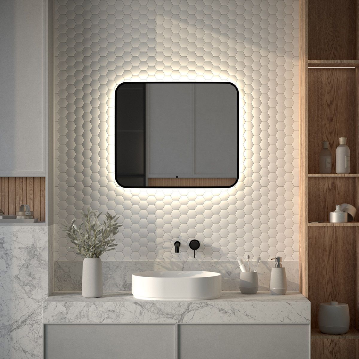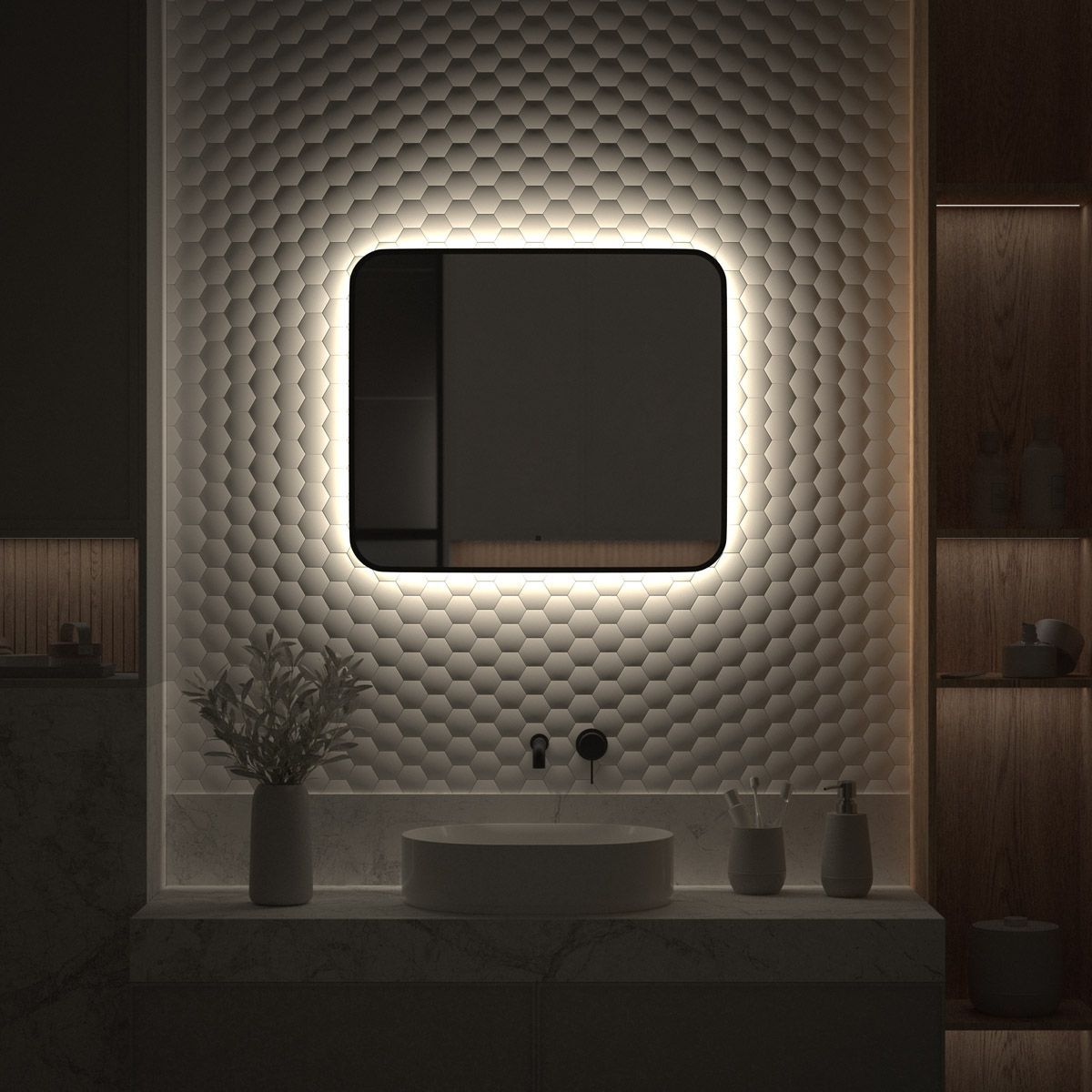Светодиодная подсветка с цветовой температурой 4500 Кельвинов обеспечивает яркость и комфортную атмосферу в любое время суток. Это зеркало оборудовано встроенным инфракрасным выключателем с регулировкой яркости и может быть легко подключено к подготовленному электро-выводу из стены.
