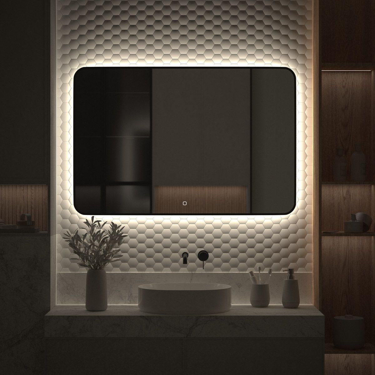 Светодиодная подсветка с цветовой температурой 4500 Кельвинов обеспечивает яркость и комфортную атмосферу в любое время суток. Это зеркало оборудовано встроенным сенсорным выключателем с регулировкой яркости и может быть легко подключено к подготовленному электро-выводу из стены.