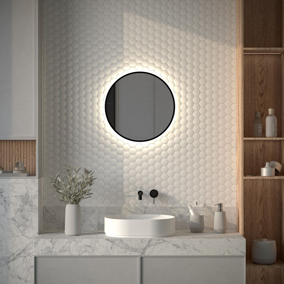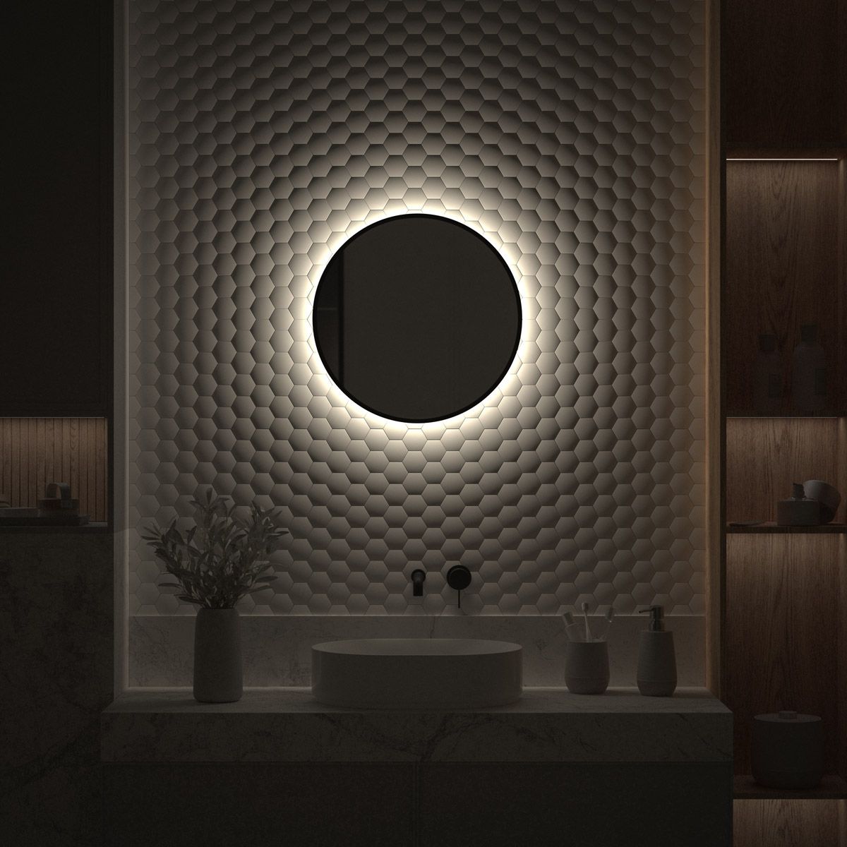 Светодиодная подсветка с цветовой температурой 4500 Кельвинов обеспечивает яркость и комфортную атмосферу в любое время суток. Это зеркало не имеет выключателя и может быть легко подключено к подготовленному электро-выводу из стены.