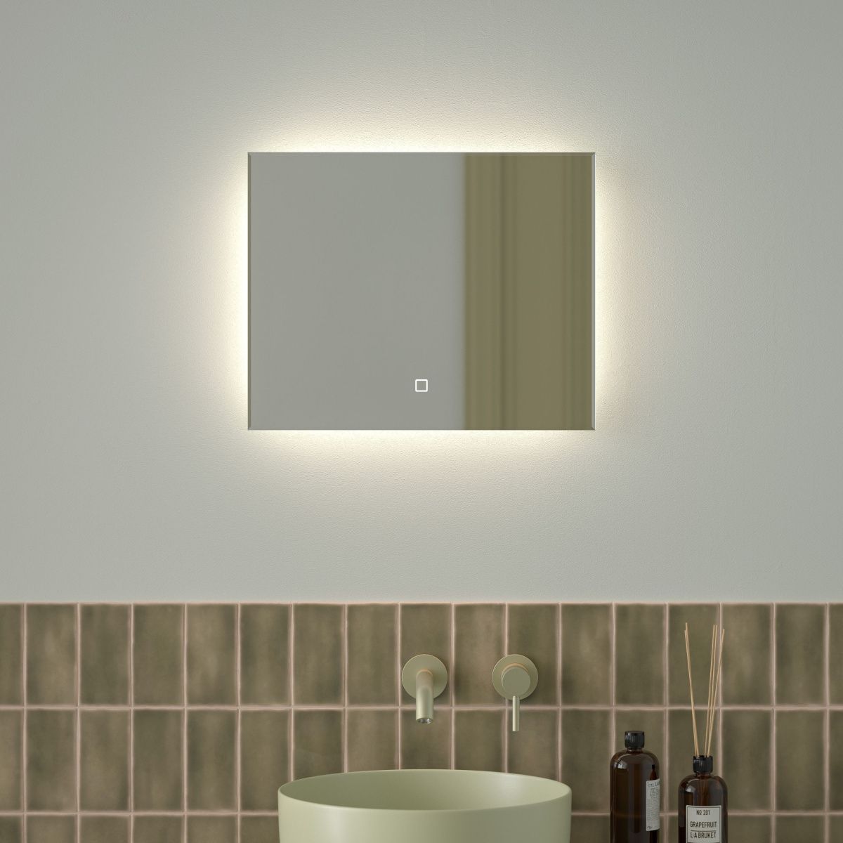 Светодиодная подсветка с цветовой температурой 4500 Кельвинов обеспечивает яркость и комфортную атмосферу в любое время суток. Это зеркало оборудовано встроенным сенсорным выключателем с регулировкой яркости и может быть легко подключено к подготовленному электро-выводу из стены.