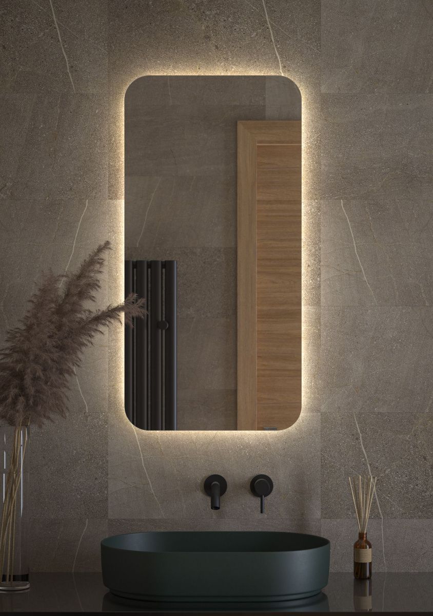 Светодиодная подсветка с цветовой температурой 4500 Кельвинов обеспечивает яркость и комфортную атмосферу в любое время суток. Это зеркало не имеет выключателя и может быть легко подключено к подготовленному электро-выводу из стены.