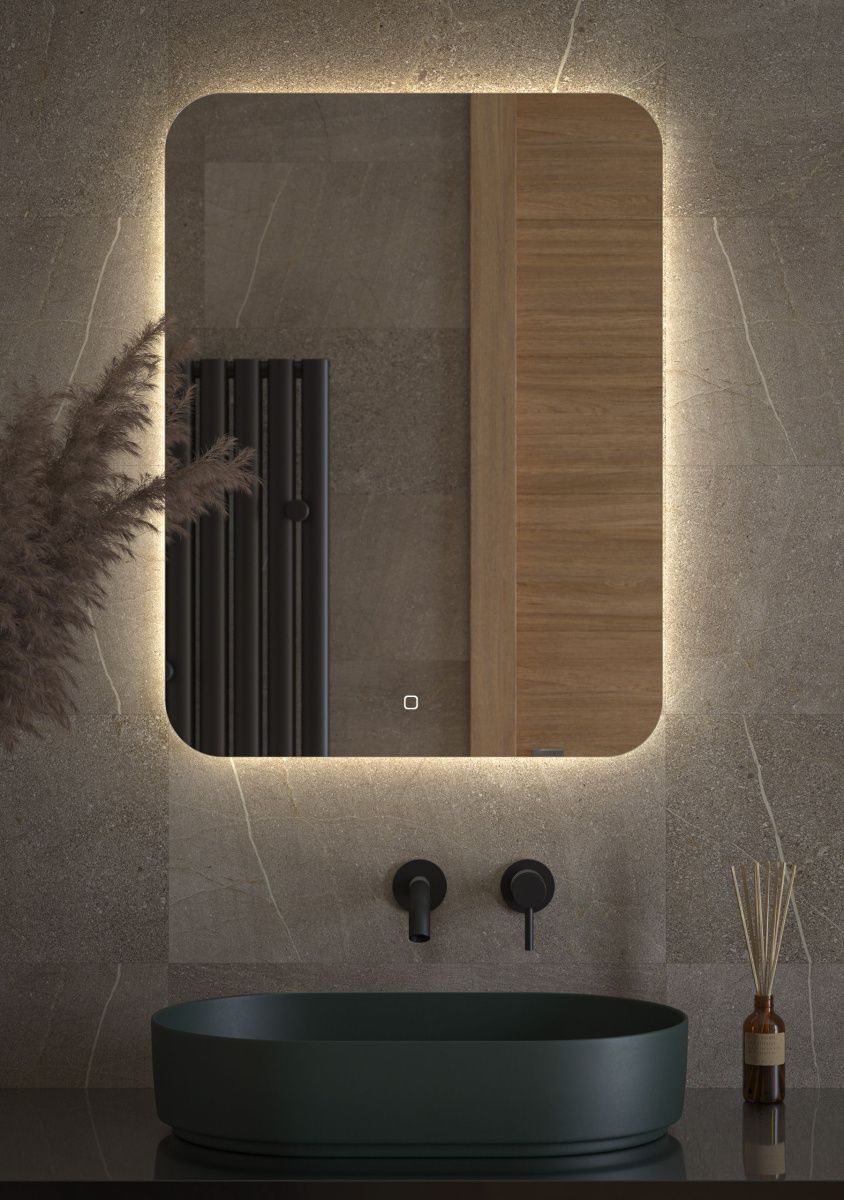 Светодиодная подсветка с цветовой температурой 4500 Кельвинов обеспечивает яркость и комфортную атмосферу в любое время суток. Это зеркало оборудовано встроенным сенсорным выключателем с регулировкой яркости и может быть легко подключено к подготовленному электро-выводу из стены. Включение подсветки происходит посредством нажатия на сенсорную кнопку. Регулировка яркости осуществляется путем удержания пальца на сенсорной кнопке.