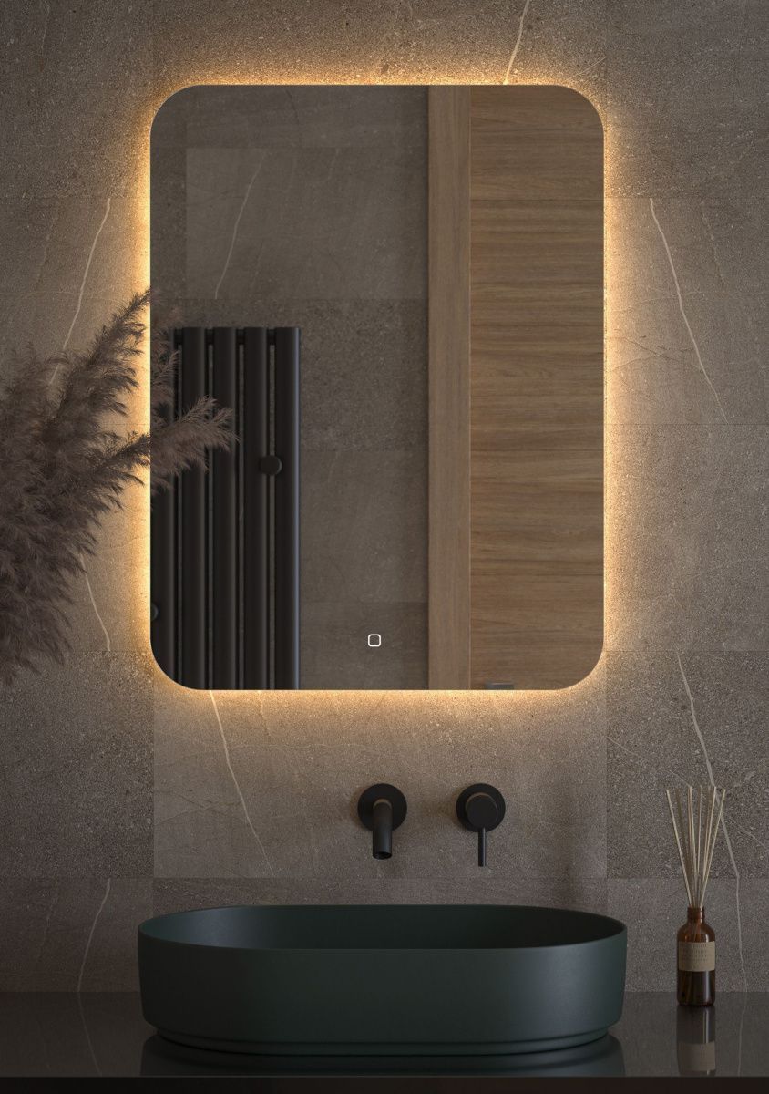 Светодиодная подсветка с цветовой температурой 3000 Кельвинов обеспечивает яркость и комфортную атмосферу в любое время суток. Это зеркало оборудовано встроенным сенсорным выключателем с регулировкой яркости и может быть легко подключено к подготовленному электро-выводу из стены. Включение подсветки происходит посредством нажатия на сенсорную кнопку. Регулировка яркости осуществляется путем удержания пальца на сенсорной кнопке.