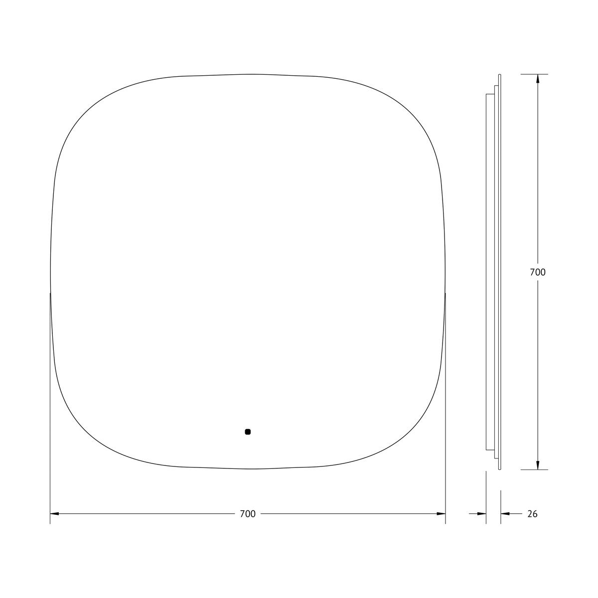Светодиодная подсветка с цветовой температурой 4500 Кельвинов обеспечивает яркость и комфортную атмосферу в любое время суток. Это зеркало оборудовано встроенным инфракрасным выключателем с регулировкой яркости и может быть легко подключено к подготовленному электро-выводу из стены.