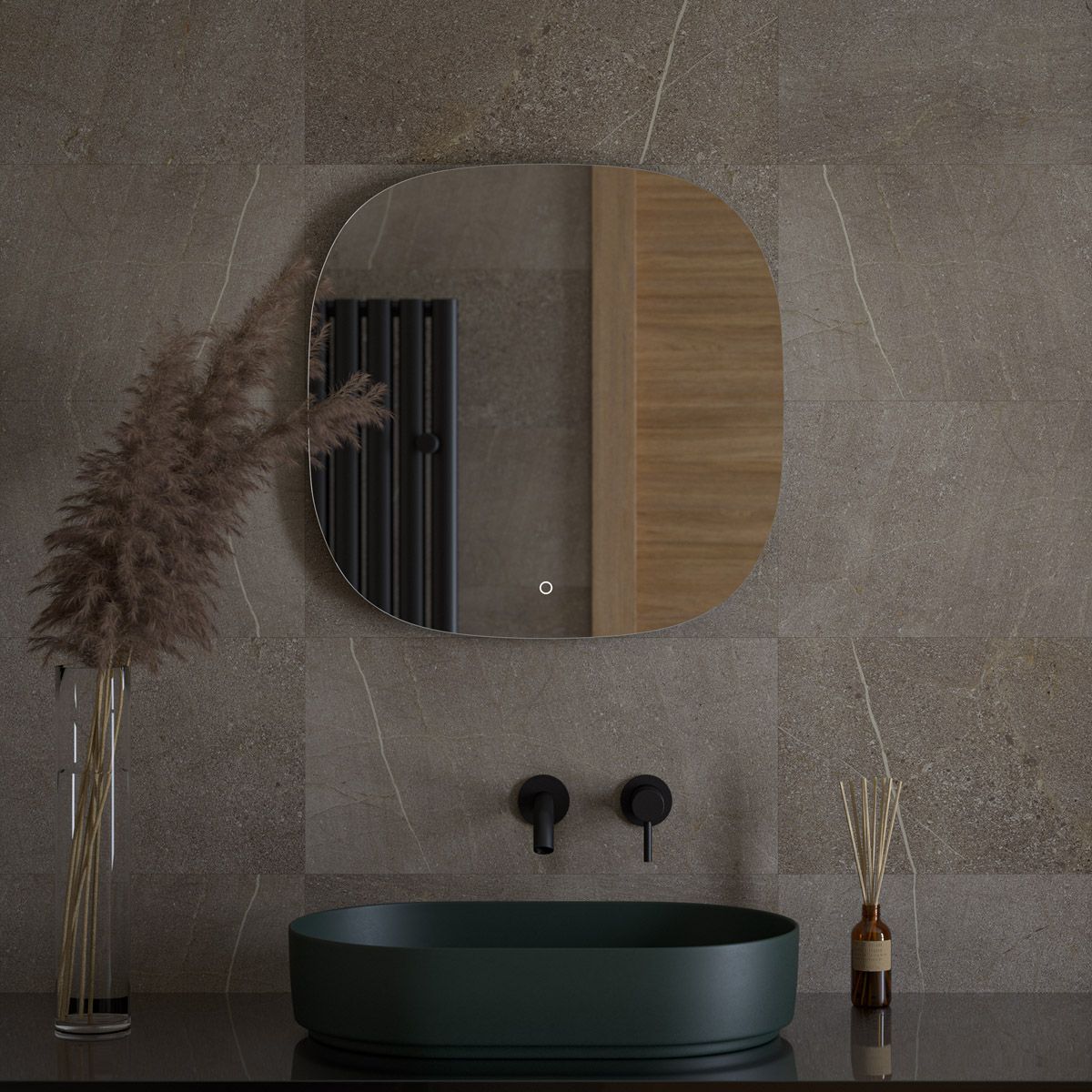Светодиодная подсветка с цветовой температурой 3000 Кельвинов обеспечивает яркость и комфортную атмосферу в любое время суток. Это зеркало оборудовано встроенным сенсорным выключателем с регулировкой яркости и может быть легко подключено к подготовленному электро-выводу из стены.