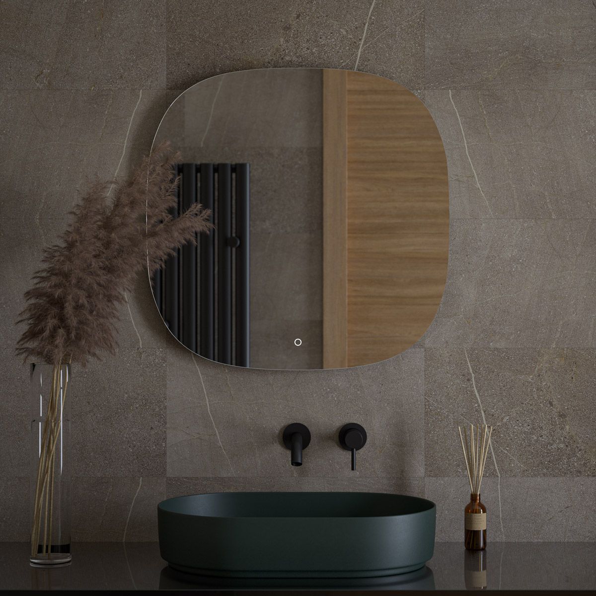 Светодиодная подсветка с цветовой температурой 3000 Кельвинов обеспечивает яркость и комфортную атмосферу в любое время суток. Это зеркало оборудовано встроенным сенсорным выключателем с регулировкой яркости и может быть легко подключено к подготовленному электро-выводу из стены.