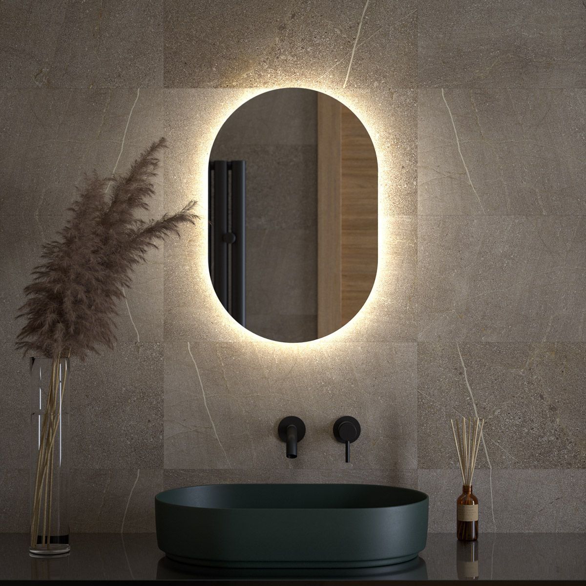 Светодиодная подсветка с цветовой температурой 4500 Кельвинов обеспечивает яркость и комфортную атмосферу в любое время суток. Это зеркало не имеет выключателя и может быть легко подключено к подготовленному электро-выводу из стены. Возможен как вертикальный, так и горизонтальный монтаж.