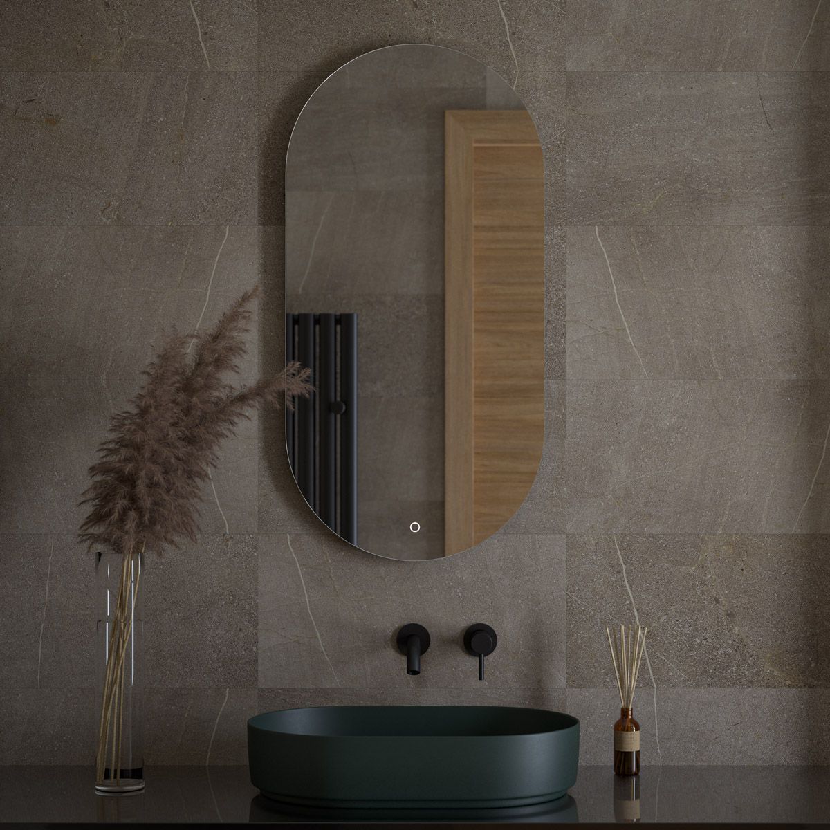 Светодиодная подсветка с цветовой температурой 3000 Кельвинов обеспечивает яркость и комфортную атмосферу в любое время суток. Это зеркало оборудовано встроенным сенсорным выключателем с регулировкой яркости и может быть легко подключено к подготовленному электро-выводу из стены. Возможен как вертикальный, так и горизонтальный монтаж.