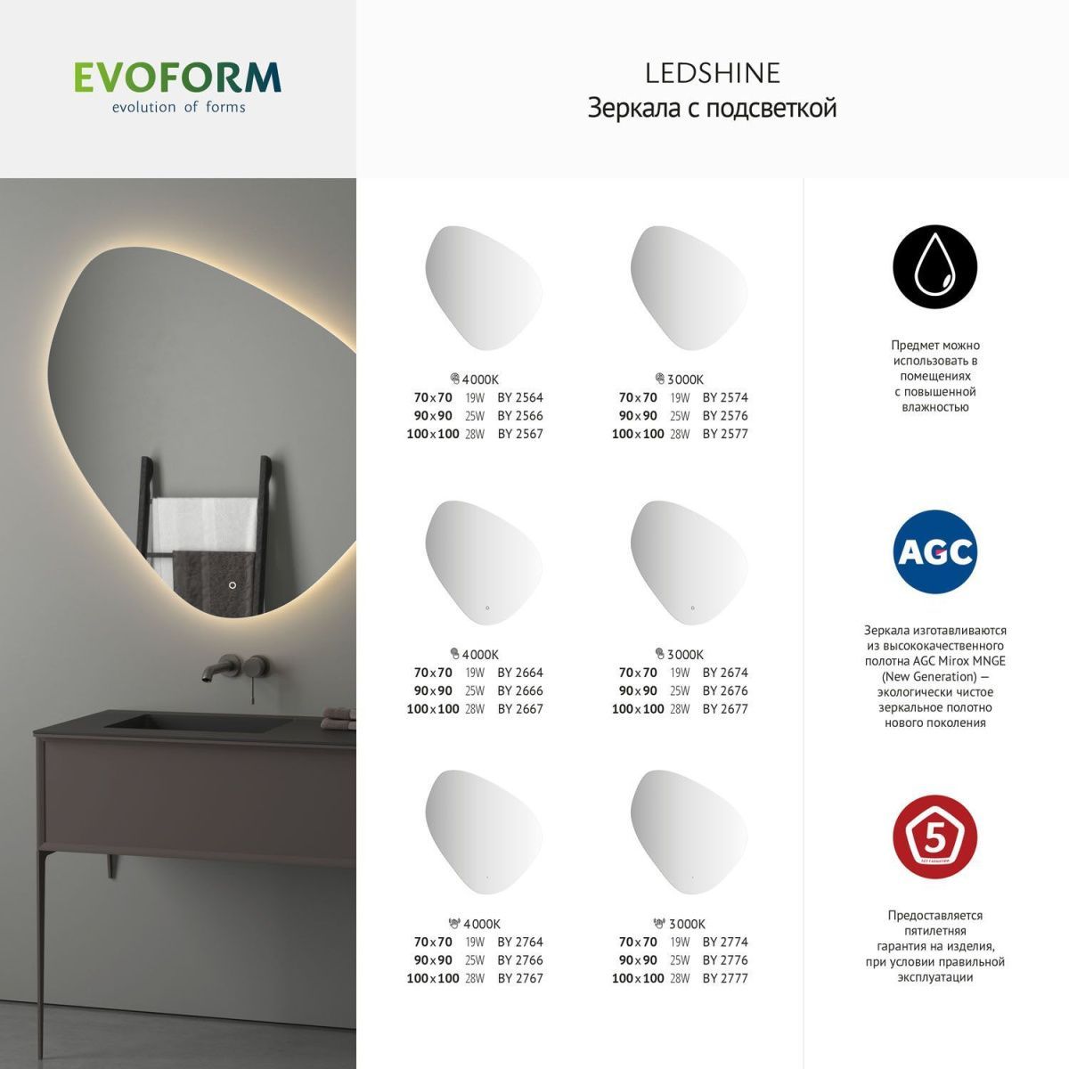 —Зеркало с подсветкой Evoform Ledshine BY 2567 100х100 подвесное
