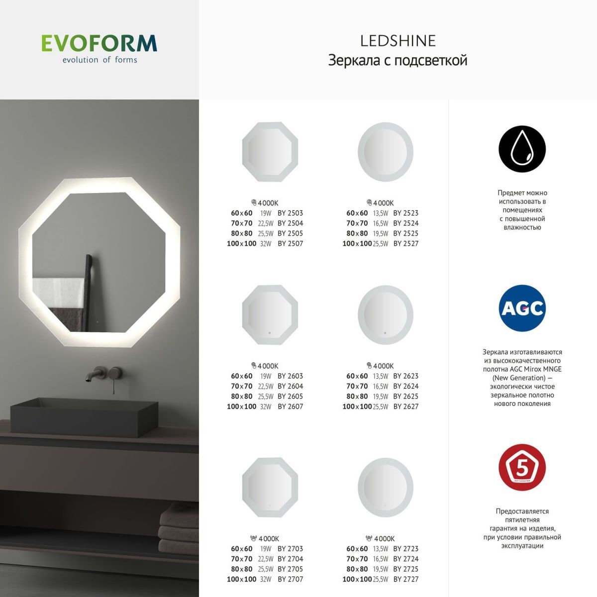 —Зеркало с подсветкой Evoform Ledshine BY 2607 100х100 подвесное