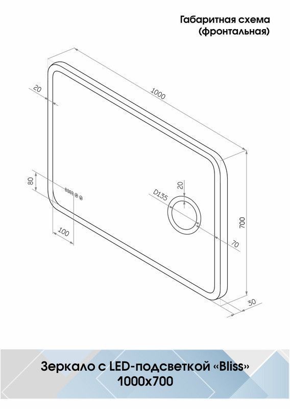 —Зеркало Continent Bliss ЗЛП256 100х70 подвесное