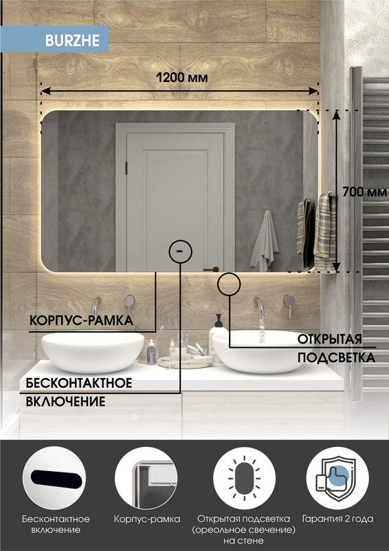 —Зеркало Continent Burzhe ЗЛП3530 120х70 подвесное