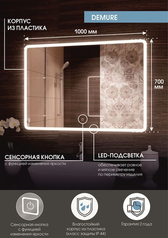 —Зеркало Continent Demure ЗЛП244 100х70 подвесное