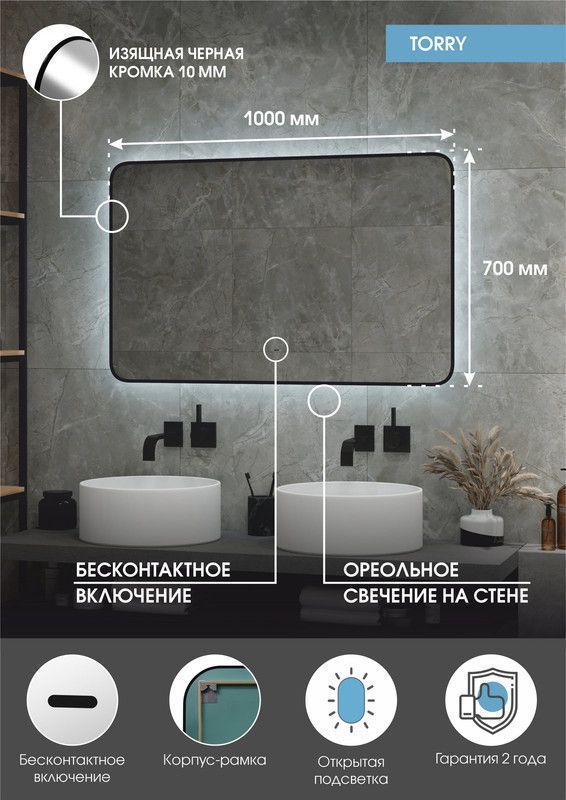 —Зеркало Continent Torry ЗЛП1528 100х70 подвесное