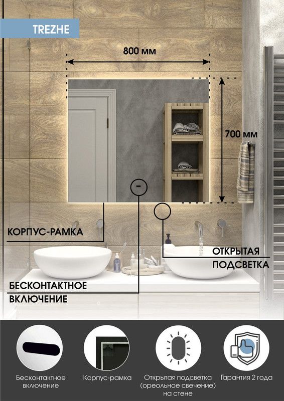 —Зеркало Continent Trezhe ЗЛП534 80х70 подвесное