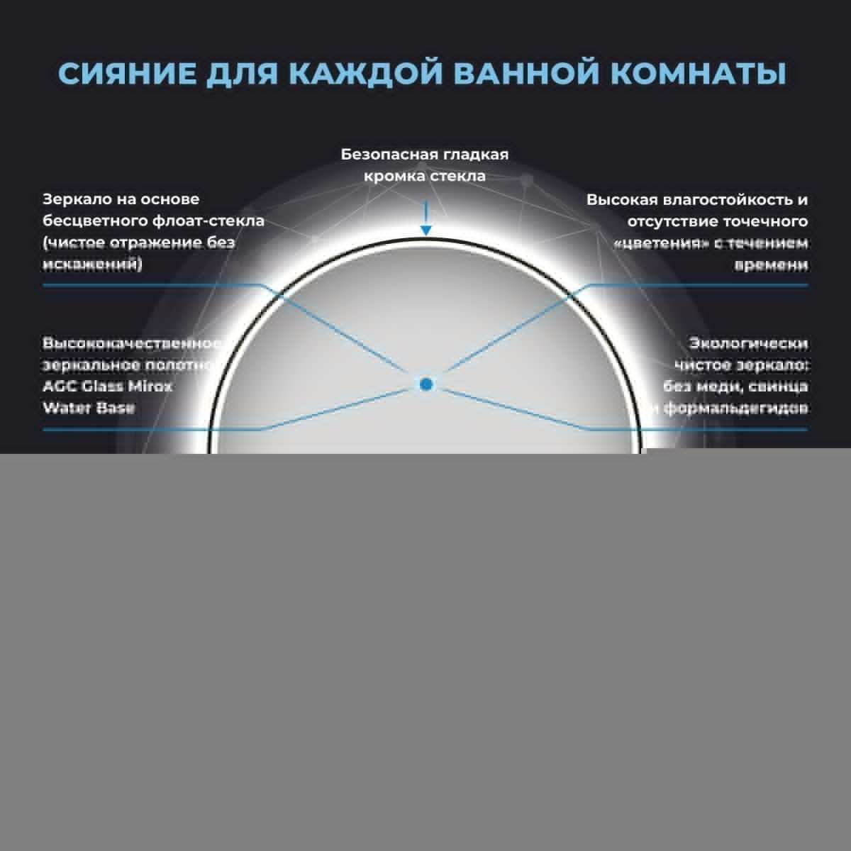 Безупречное японское стекло — результат непрерывного развития технологий, оно соответствует единой системе защиты от коррозии и отсутствию точечного «цветения» с течением времени. В зеркале с интерьерной и фронтальной подсветкой функциональность гармонично соединена с дизайном. Интерьерная подсветка, наполняет пространство светом и придает конструкции легкость. Фронтальный свет создает рассеянный комфортный для глаз поток, позволяющий рассмотреть каждую деталь отражения во время гигиенических и косметологических процедур.