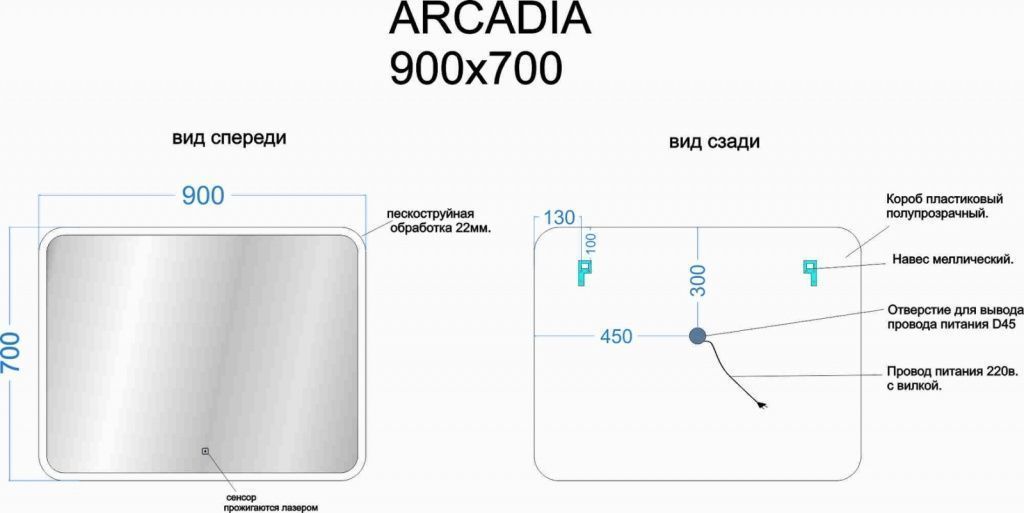 —Зеркало с подсветкой Sancos Arcadia AR900 90х70 подвесное