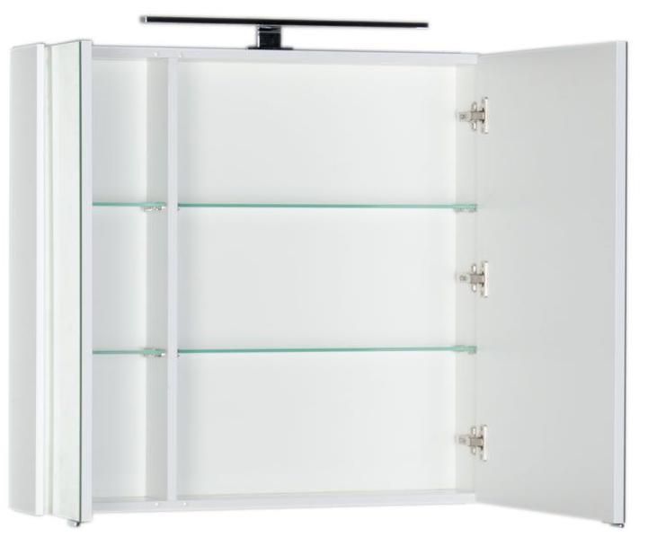 Зеркало-шкаф Акванет Латина — предложение для тех, кто решил создать ванную комнату в стиле «модерн». По ту сторону зеркального полотна найдется достаточно места для хранения необходимых для ежедневной гигиены принадлежностей, кроме того, теперь они будут располагаться удобно, непосредственно «под рукой». Полки зеркала-шкафа выполнены из специального ударопрочного стекла. Мягкое, в то же время достаточное по силе освещение создают экономичные внешние светильники.