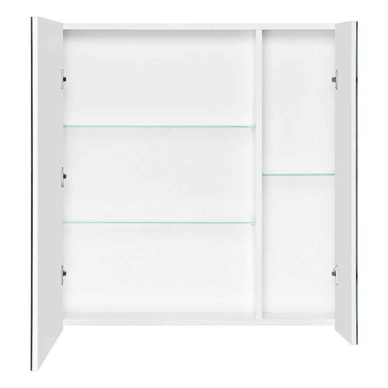 Зеркальный шкаф Беверли 80 в современном стиле выполнен из влагостойкой ламинированной плиты и высококачественной MDF. За двумя зеркальными фасадами-створками, которые снабжены петлями с интегрированной системой плавного закрывания, расположены два вместительных отделения со стеклянными полками, регулируемыми по высоте. Боковые стенки зеркального шкафа окрашены в белый цвет с высокой степенью глянца, что обеспечивает изделию привлекательный внешний вид, а также износостойкость и долговечность.