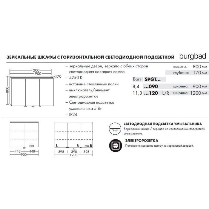 —Зеркало-шкаф Burgbad Eqio SPGT090F2009 90х17х80 подвесной цвет белый глянцевый