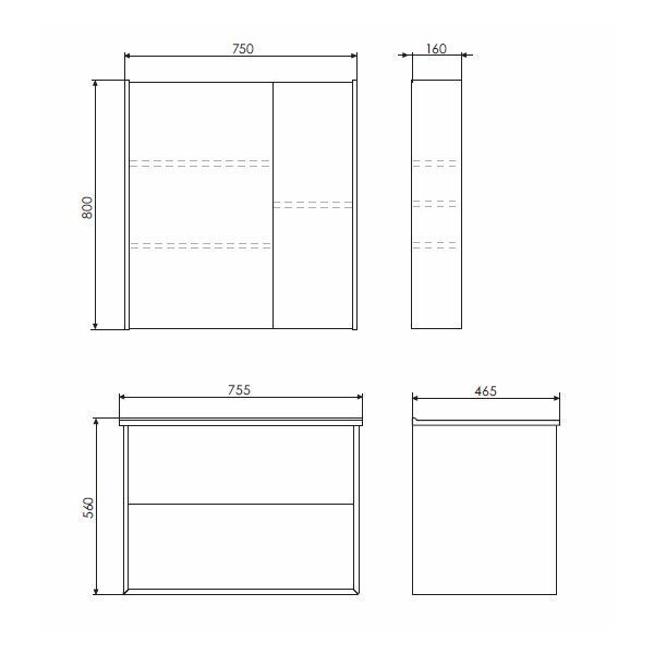 Габариты (ШхВхГ): 750*800*160 мм.