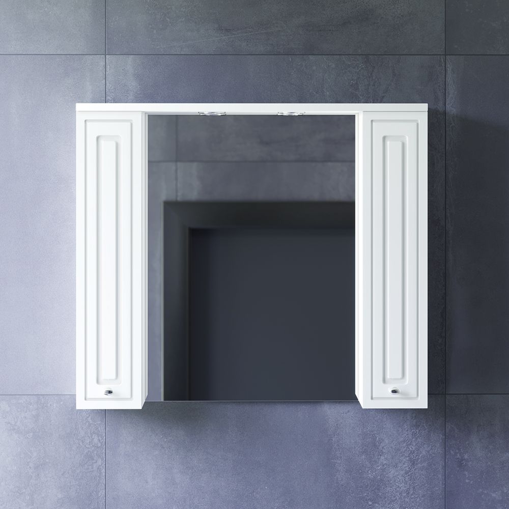 Размер зеркала 750 х 470 мм. Над зеркалом установлена подсветка для удобного нанесения макияжа.