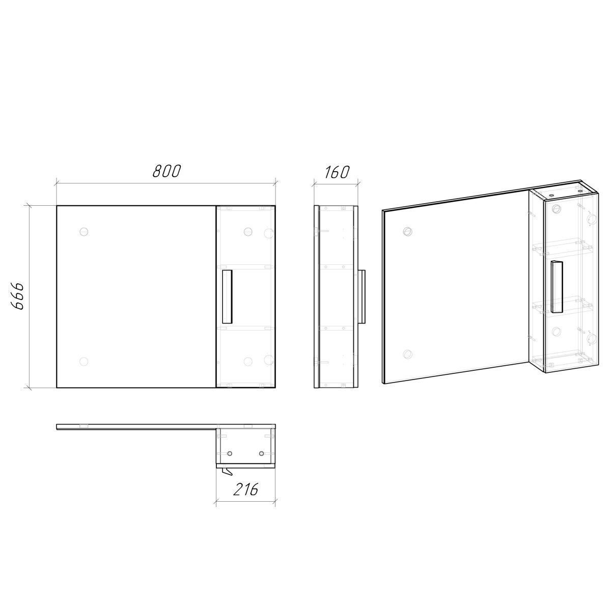 Шкаф-зеркало имеет петли с доводчиками, что обеспечивает плавное и бесшумное закрывание дверцы. Внутренние полочки также выполнены из ЛДСП.