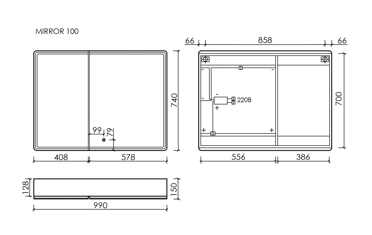 —Зеркало-шкаф Sancos Mirror MI100ECH 99х15х74 настенный цвет дуб чарльстон