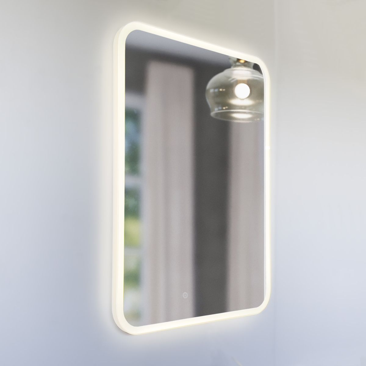 Зеркало для ванной комнаты закругленными углами, с проводом длиной 1,3 м и вилкой подключения в сеть 220 В