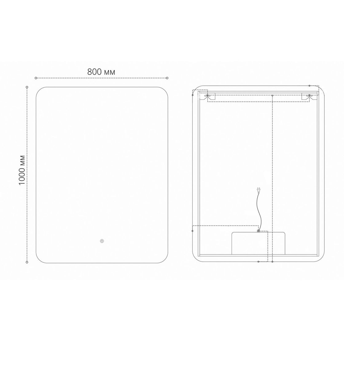 Все электрические компоненты размещены внутри корпуса из полистирола. В качестве элемента подсветки используется светодиодная лента с плотностью диодов 150 шт./м мощностью 9,6 Вт/м, что обеспечивает яркое свечение по периметру зеркала. Срок службы диодов - 30000 часов. Управление подсветкой осуществляется сенсорным выключателем.