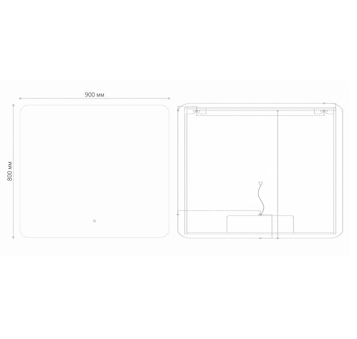 Все электрические компоненты размещены внутри корпуса из полистирола. В качестве элемента подсветки используется светодиодная лента с плотностью диодов 150 шт./м мощностью 9,6 Вт/м, что обеспечивает яркое свечение по периметру зеркала. Срок службы диодов - 30000 часов. Управление подсветкой осуществляется сенсорным выключателем.