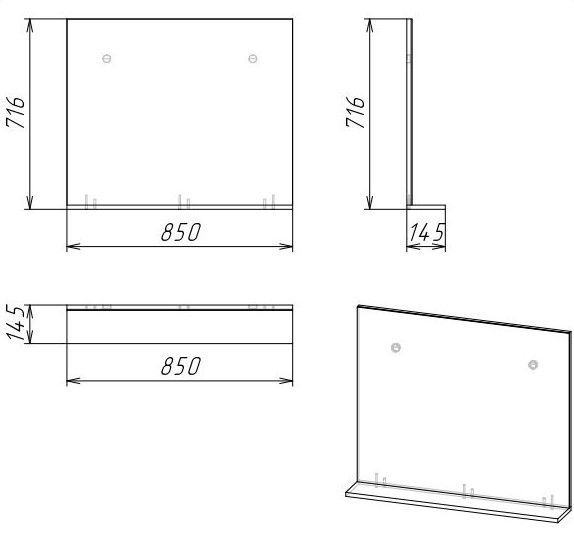 Зеркало выполнено из влагостойкого ЛДСП, устойчивое к перепадам температур и высокой влажности, крепится к стене.