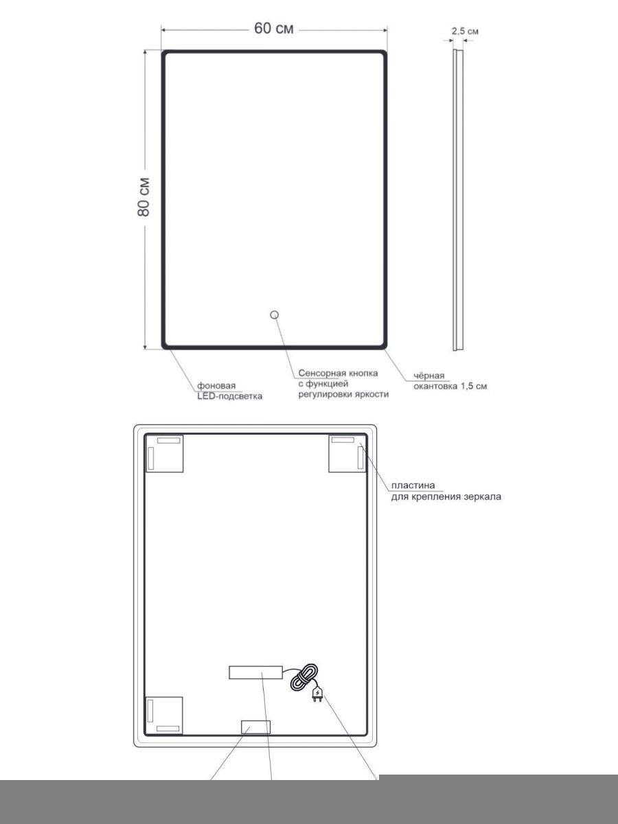 Зеркало с подсветкой Orange Black BL-60ZE 60х80