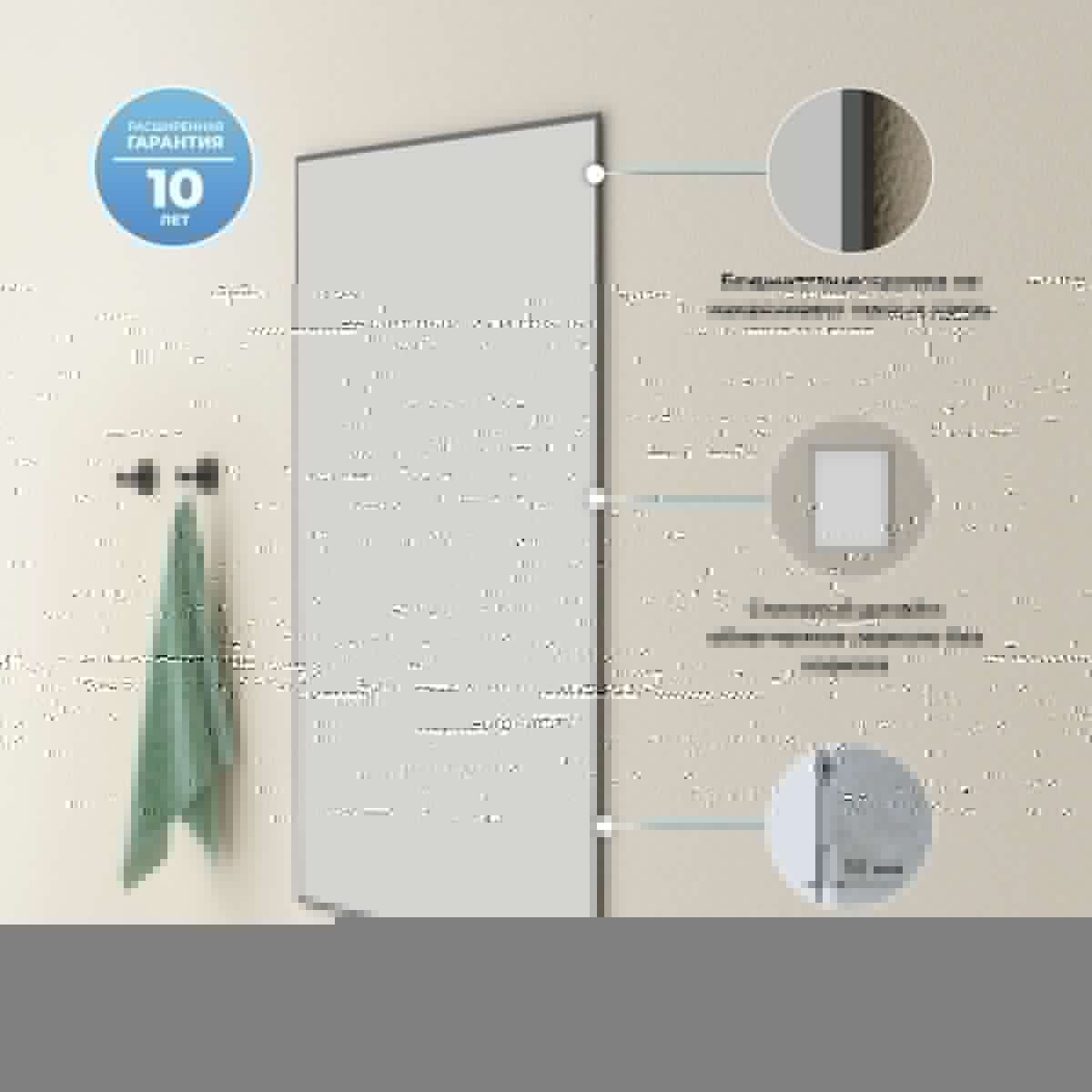 Безупречное японское стекло — результат непрерывного развития технологий, оно соответствует единой системе защиты от коррозии и отсутствию точечного «цветения» с течением времени. Периметр зеркального полотна декорирован тонким черным контуром, при облучении которого отверждаемые УФ-чернила значительно повышают прочность сцепления.