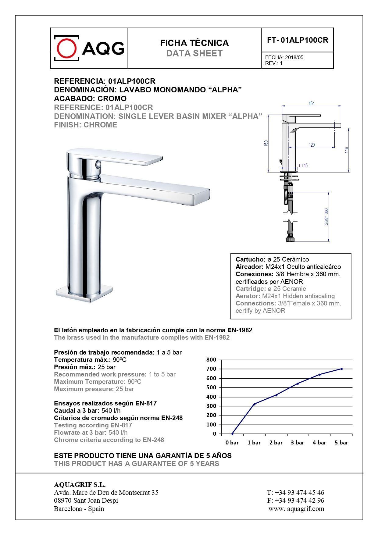 —Смеситель AQG Alpha 01ALP100CR на раковину хром