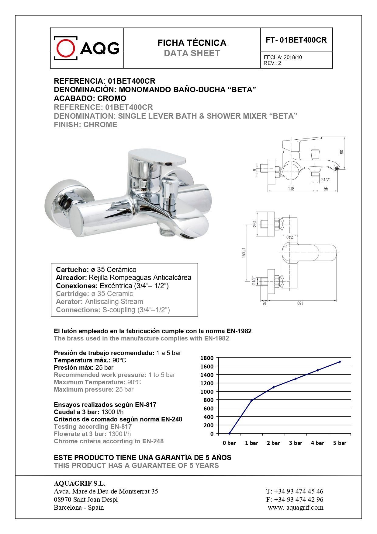 Смеситель для душа AQG Beta 01BET400CR настенный хром