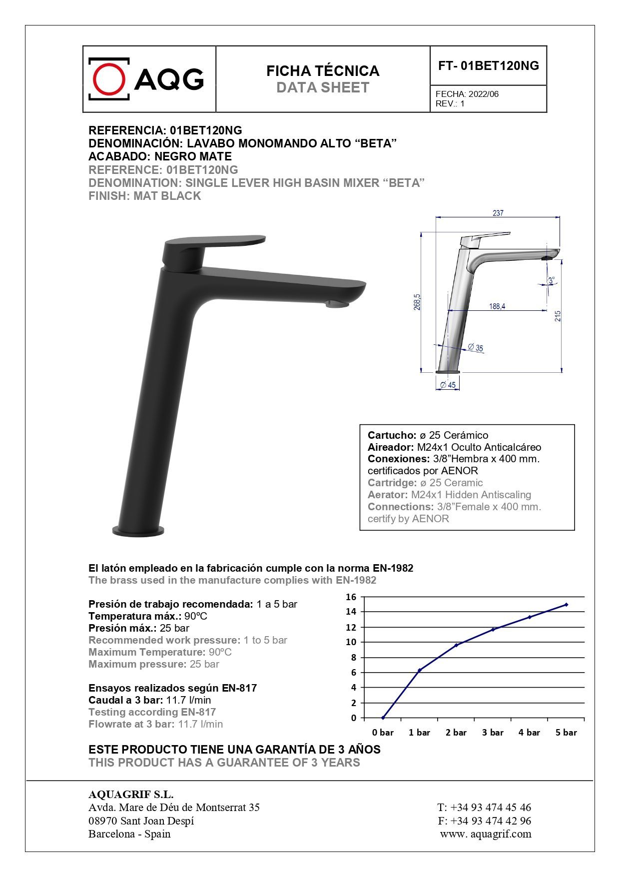 —Смеситель AQG Beta 01BET120NG на столешницу черный матовый