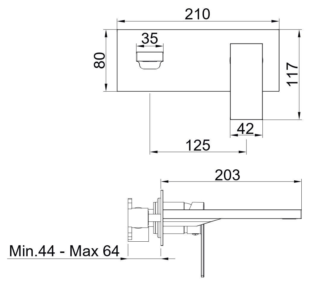 —Смеситель AQG Bold 01BOC170NG встраиваемый в стену черный матовый