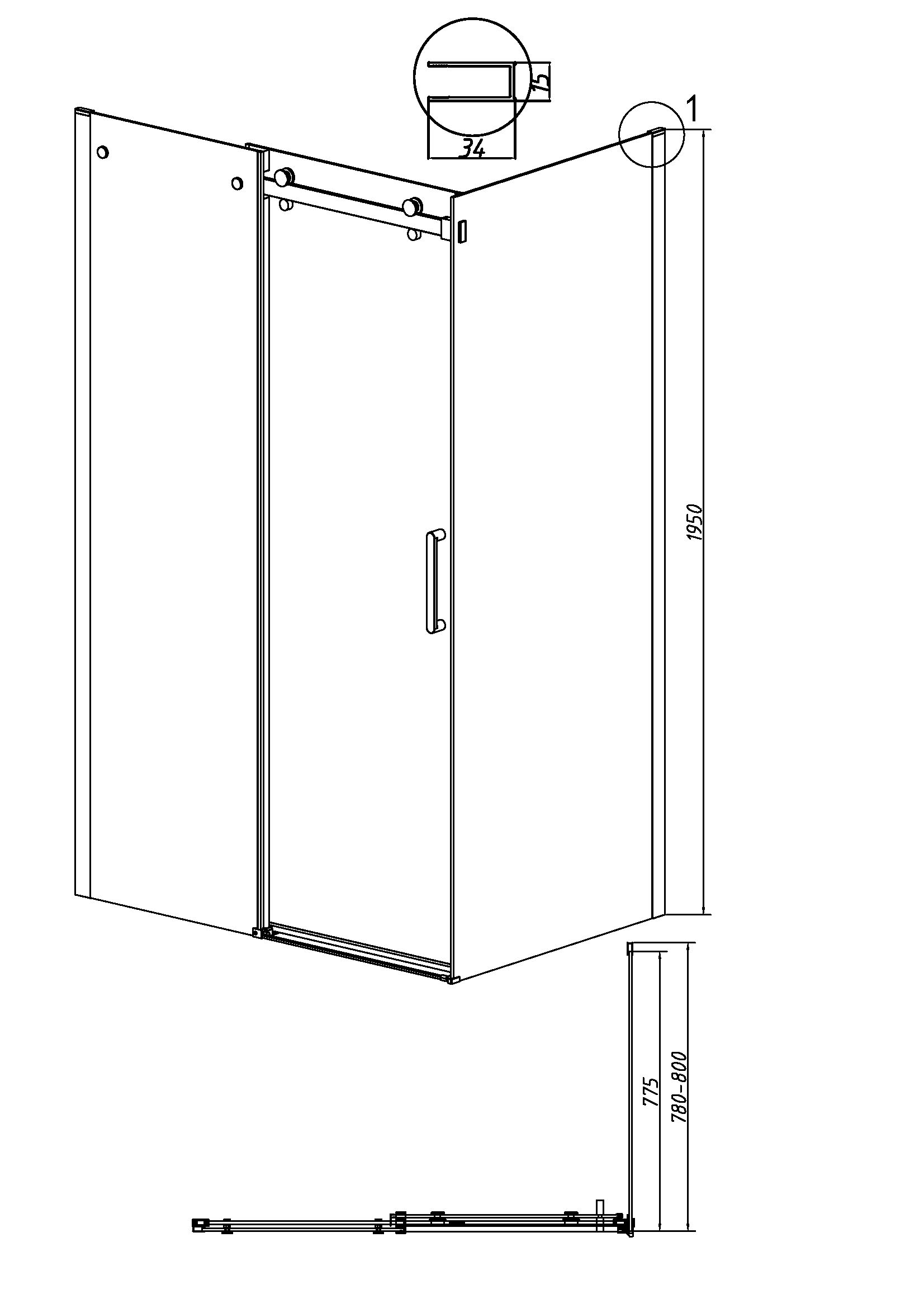 —Душевая перегородка Grossman Classic 200.K33.04.80.42.00 80х195 стекло прозрачное профиль графит