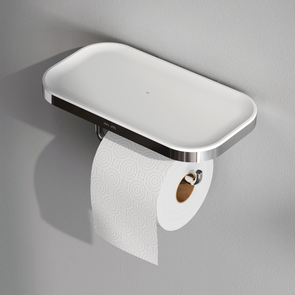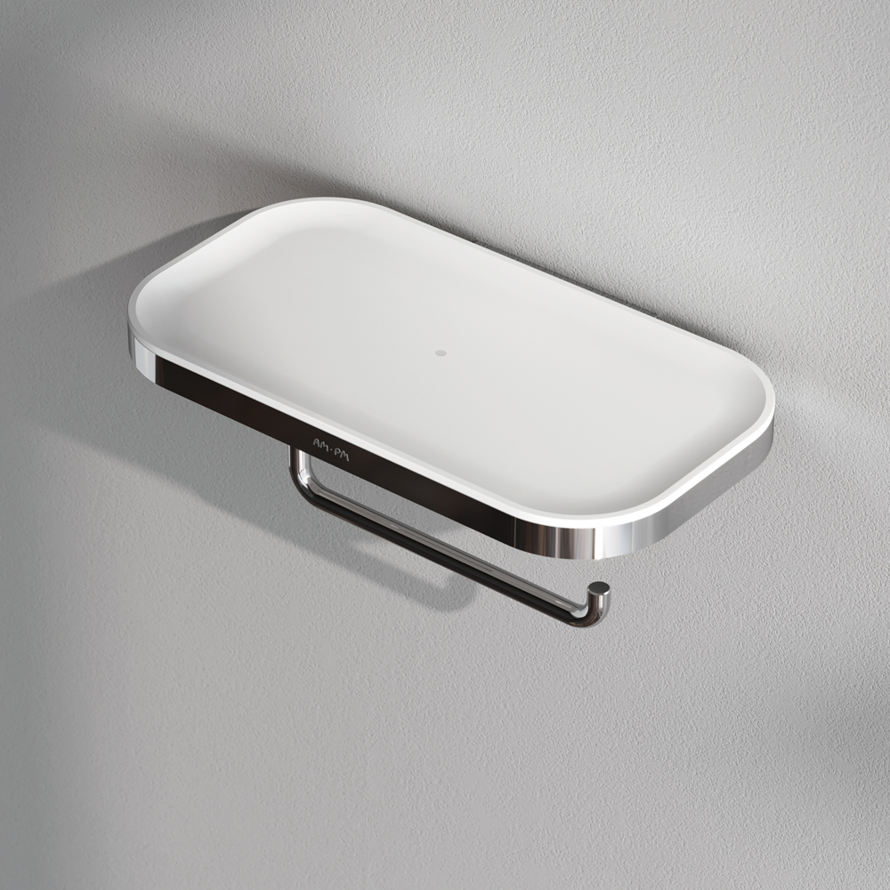 Обтекаемая форма продукта внешне напоминает современные смартфоны и повторяет линии других продуктов коллекции. Держатель оснащен удобной полочкой которую можно использовать для хранения необходимых мелочей.