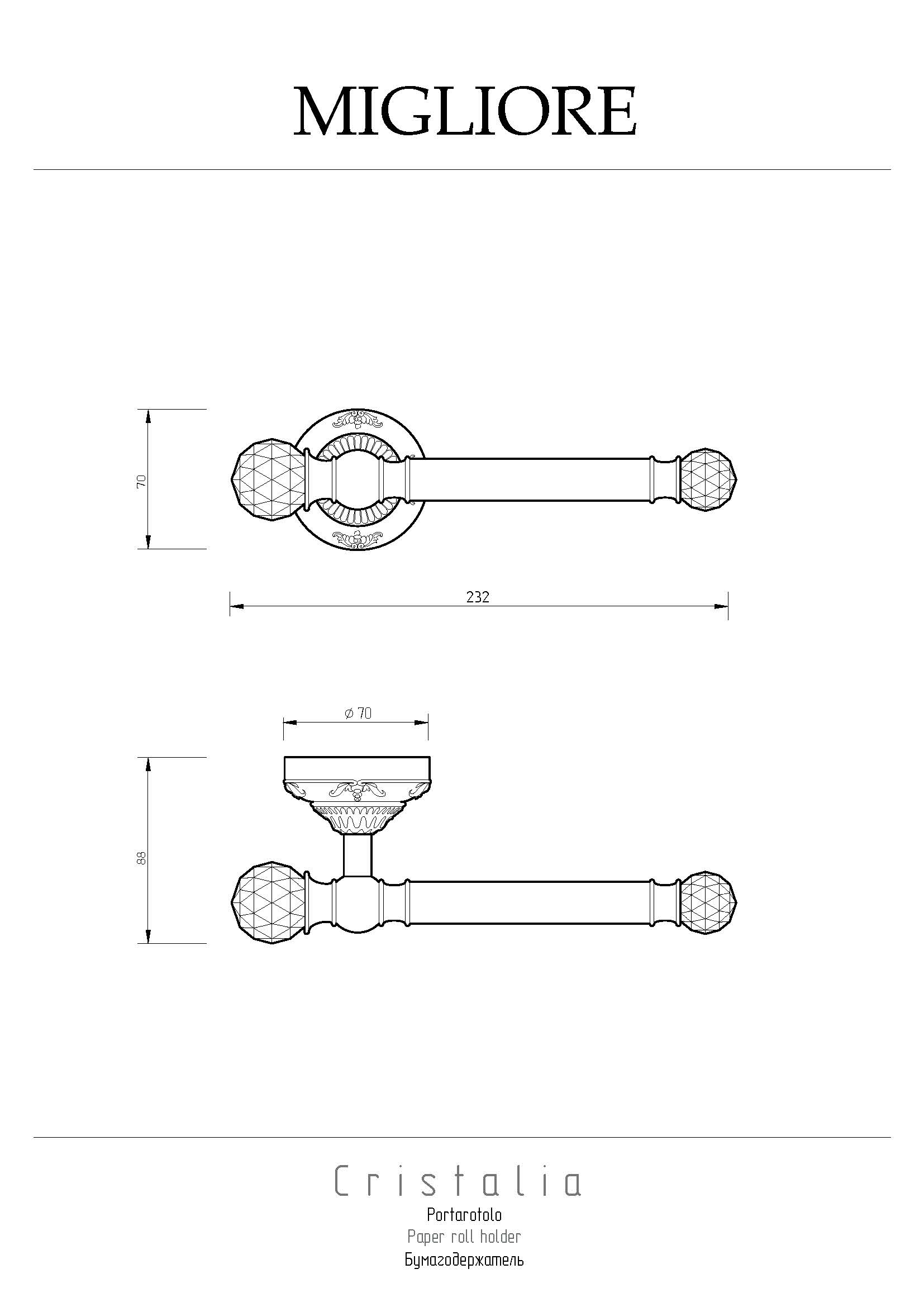 Бумагодержатель коллекции CRISTALIA бренда MIGLIORE — это один из необходимых аксессуаров для ванной комнаты. Аксессуар украшен кристаллами Сваровски.