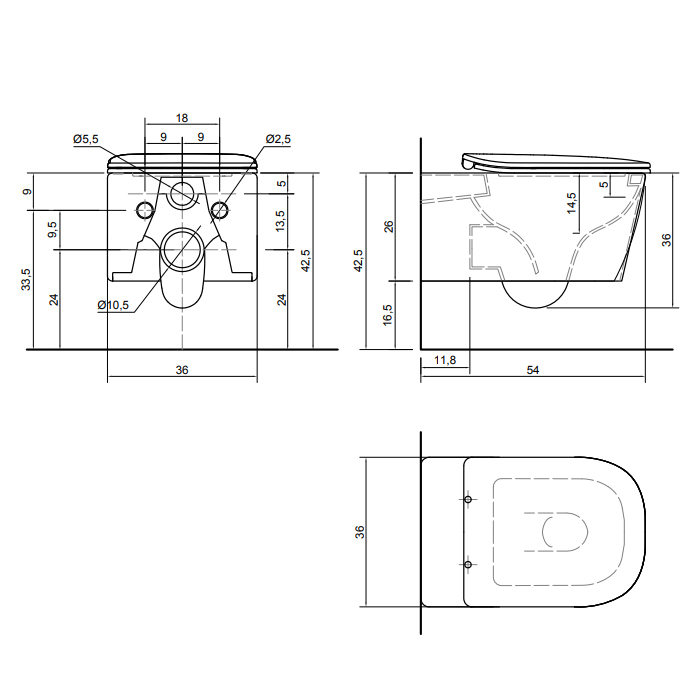 Чаша унитаза подвесная Antonio Lupi Sanitary KOMODO3 цвет белый матовый без сиденья безободковая
