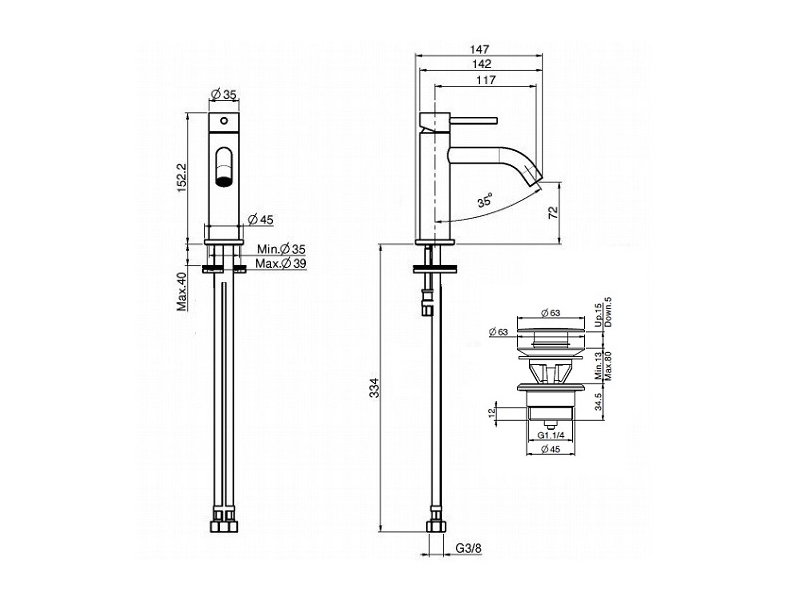 Cмеситель для биде FIMA CARLO FRATTINI SPILLO UP F3032XSCR,  с двумя гибкими шлангами 370 мм, управляемый донный клапан 1"1/4, цвет хром