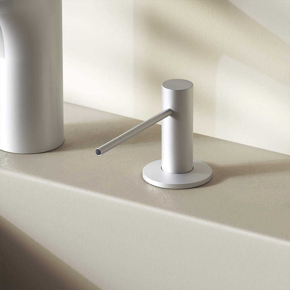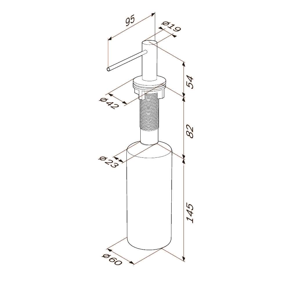 Встраиваемые универсальные диспенсеры помогут поддерживать красивый внешний вид кухни или ванной комнаты. Это незаменимый аксессуар  который выполняет несколько функций. Во-первых  экономия расхода моющего средства или жидкого мыла благодаря мягкому и плавному ходу помпы. Во-вторых  избавляет от визуального шума. Диспенсеры произведены из нержавеющей стали  устойчивой к коррозии. Длина носика составляет 95мм  поэтому будет удобна для использования на любом типе и размере раковины. Минималистичный дизайн диспенсера прекрасно впишется в обновленный интерьер вашей ванной комнаты или кухни.