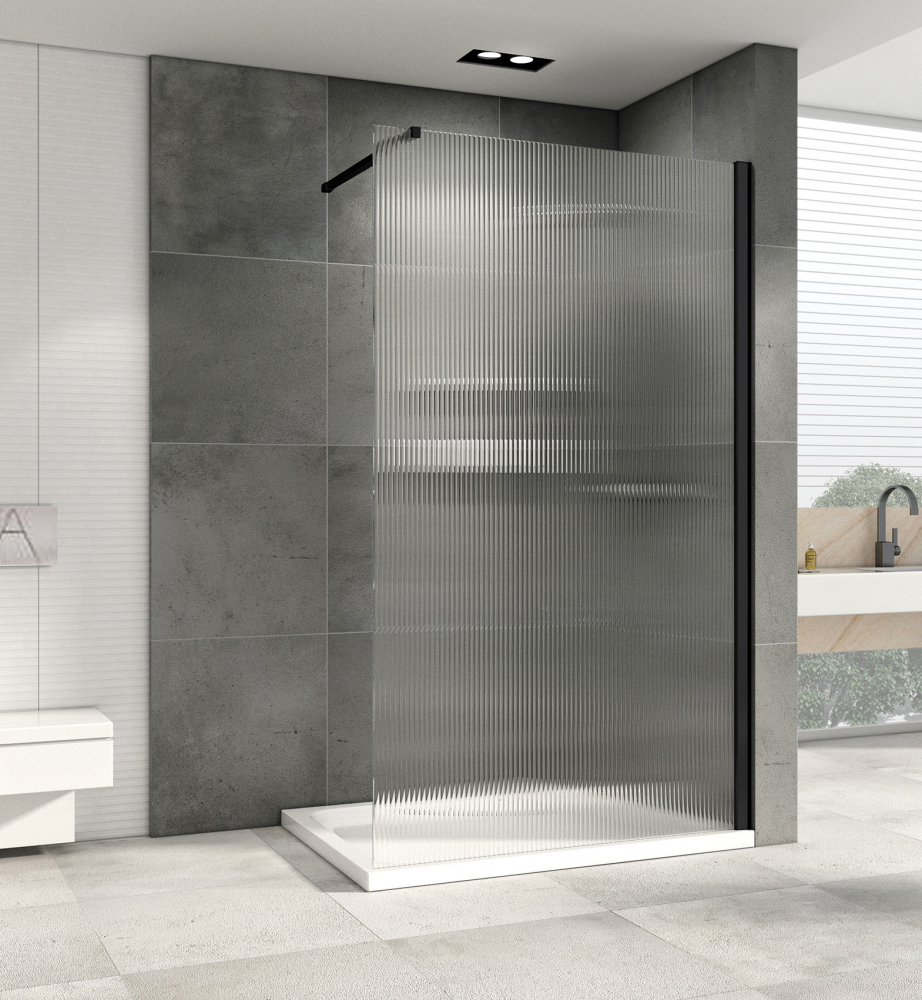 —Душевая перегородка Abber Immer Offen AG61101R8 100х200 стекло рифленое профиль черный